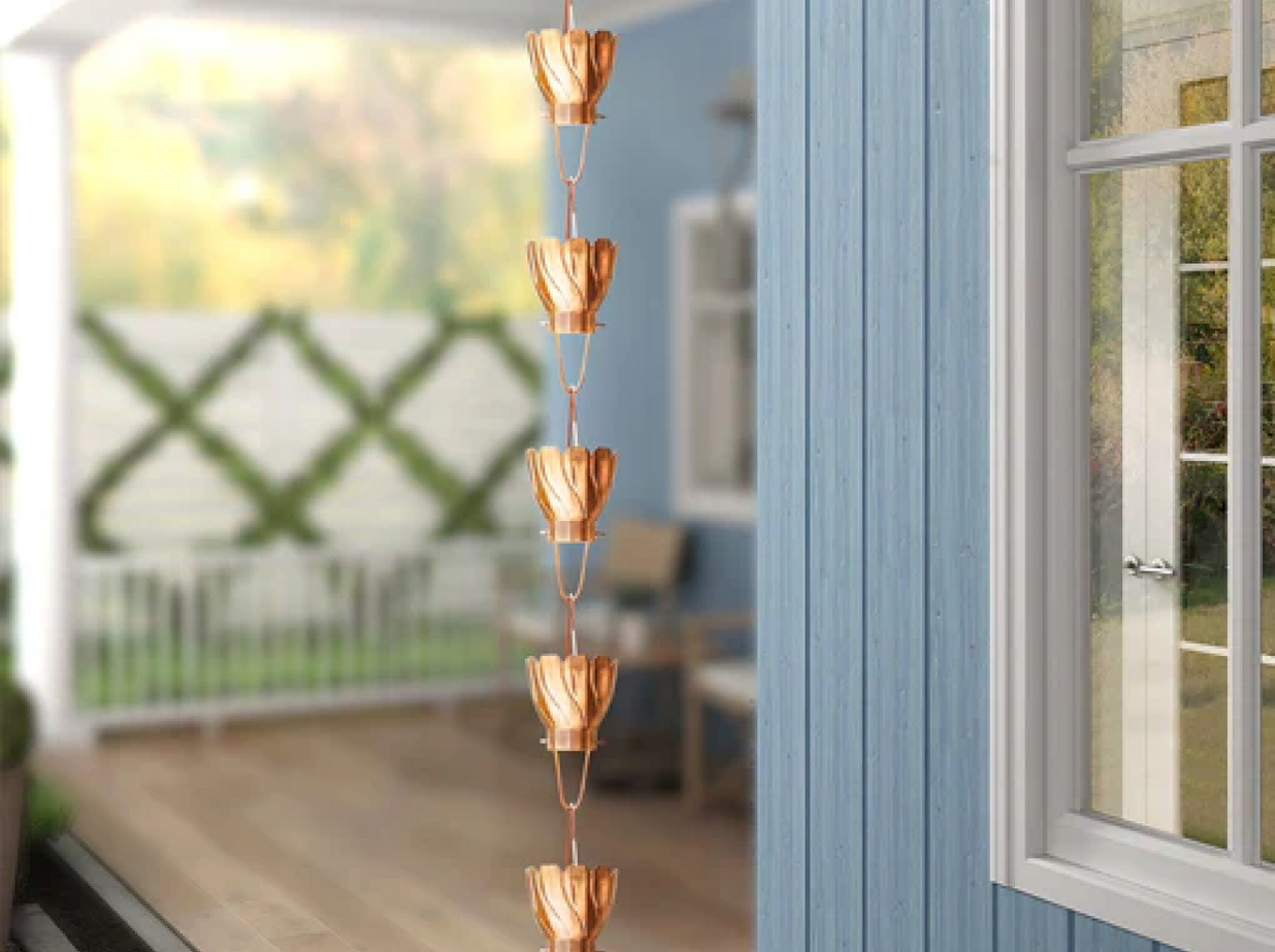 The Akira Cup Style Pure Copper Rain Chain is a beautifully designed large cup style option designed to meet your architectural requirements but also provides a practical and sensible solution for your gutters.