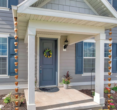 The Akira Cup Style Pure Copper Rain Chain is a beautifully designed large cup style option designed to meet your architectural requirements but also provides a practical and sensible solution for your gutters.